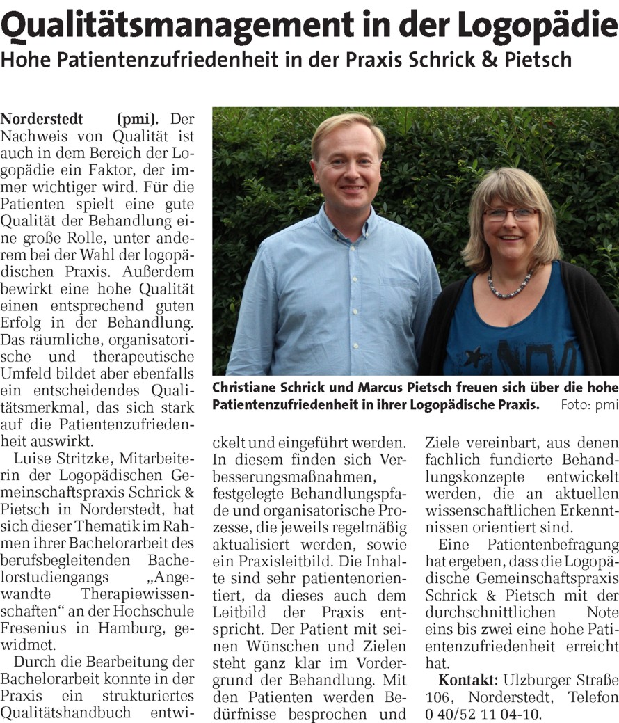 Patientenbefragung: Pressebericht vom 10.10.2015