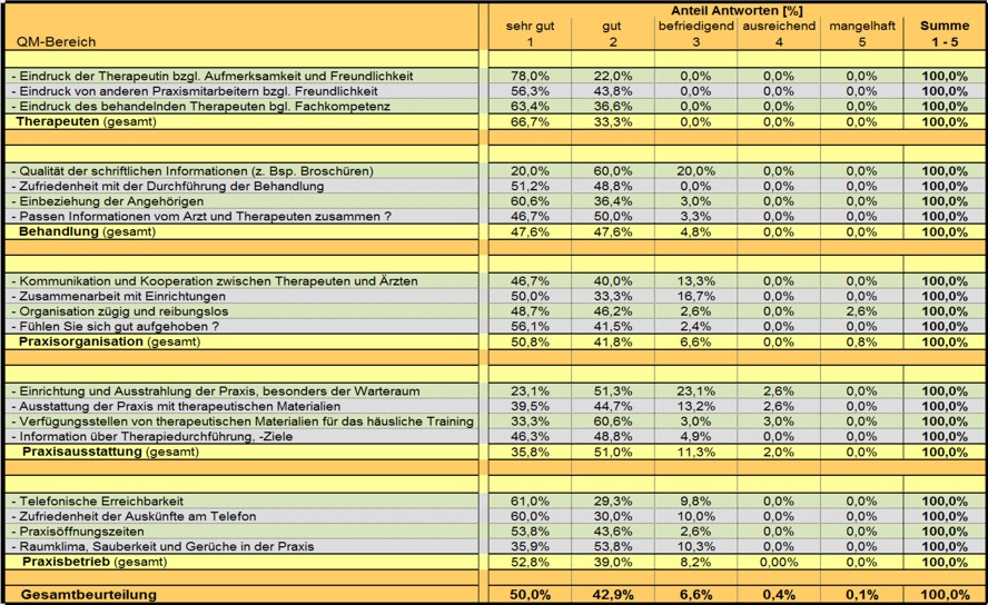 Dies zeigt uns, dass wir nach unserem Umzug in die neuen Praxisräume mit dem gut erreichbaren Standort unsere Qualität halten und teilweise verbessern konnten.